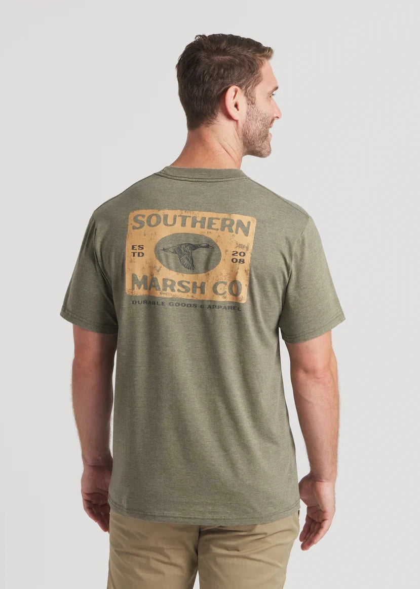 Breathable and lightweight, our SEAWASH™️ Tee - Mallard Sighting short sleeve t-shirt features a full color Southern Marsh logo with a flying Mallard on back and a handy front pocket. Made for comfort and all day wear, this tee is perfect for layering with our fleece pullovers and canvas jackets.