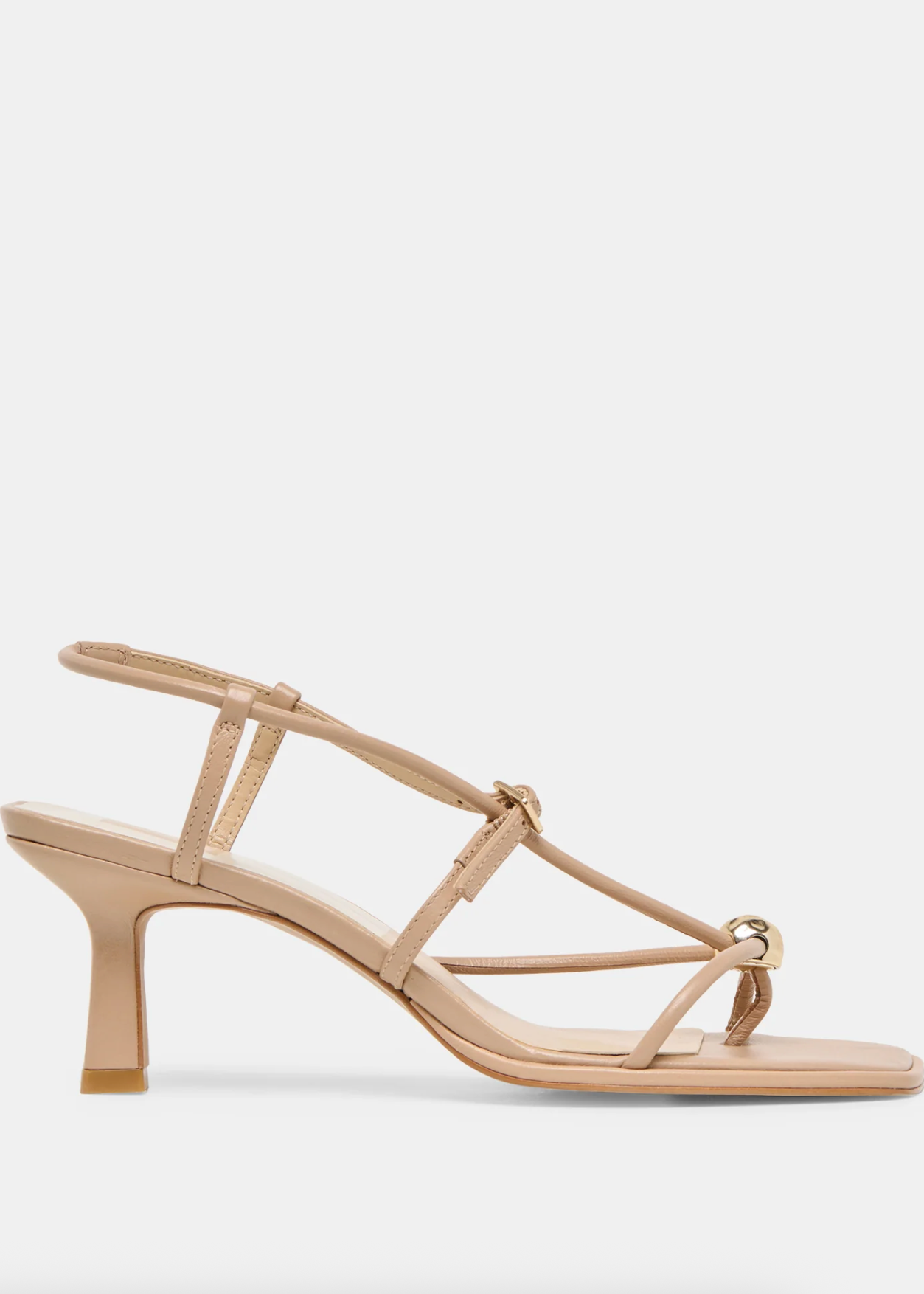 MYLEE’s understated and strappy design goes with every event look. With of-the-moment details like a leg-elegonating architectural heel, squared off toe, and adjustable strap topped with a gleaming gold hardware accent, she’s both effortlessly cool and so polished. This sustainable heel is available in too many essential colorways to choose from—from shining gold and silver metallics, to classic neutrals, to bold statement colors. She pairs perfectly with cocktail dresses and matching sets for every wedding or party this season.