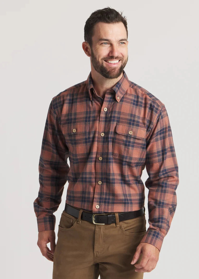 Randolph Plaid Flannel - Stone Brown & Navy
