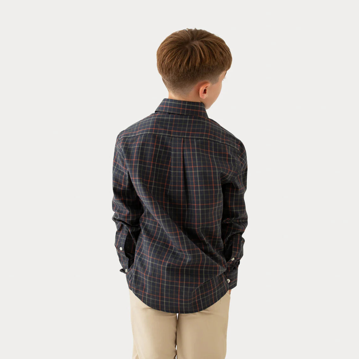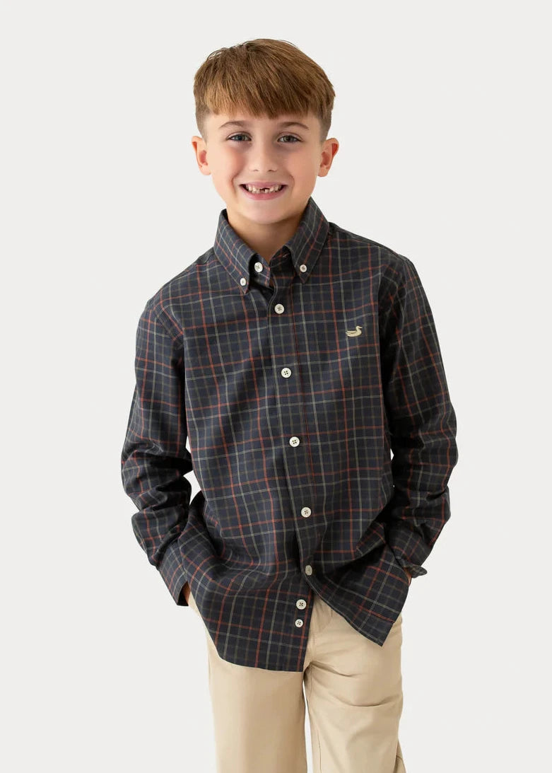 Youth Chateau Windowpane Dress Shirt - Navy & Dark Olive