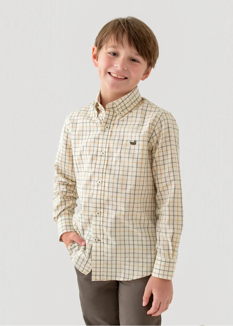 Crafted from 100% cotton and wrinkle-free, our Youth Chateau Windowpane Dress Shirt features a pastel windowpane grid pattern perfect for spring. Our classic duck embroidery on the chest and a button-down collar add signature details. Ideal for school, church or any family gathering, this shirt offers versatile, polished style and the perfect amount of stretch for the active child.