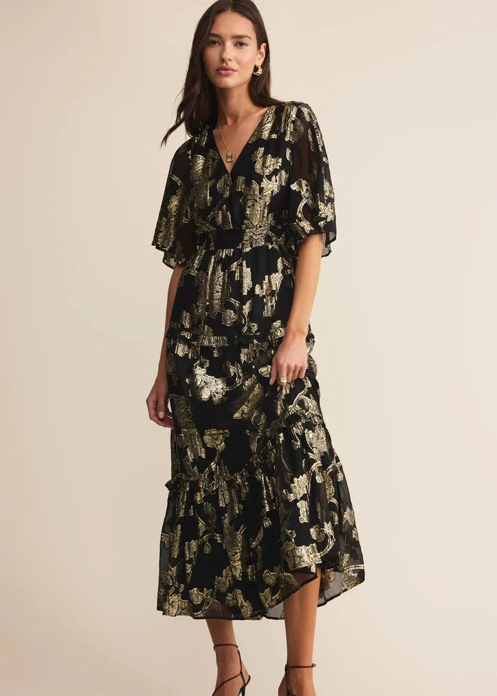 Kiera Black Jacquard Maxi Dress