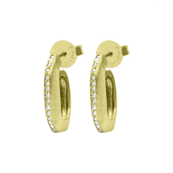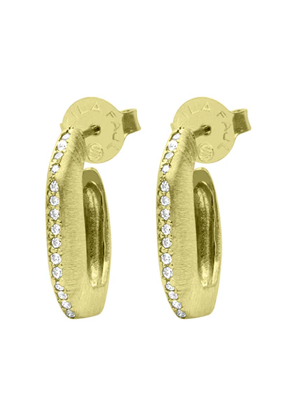 Handmade in Brazil.  This irregular hexagon shaped hoop is embellished with CZ's to create eye catching sparkle.