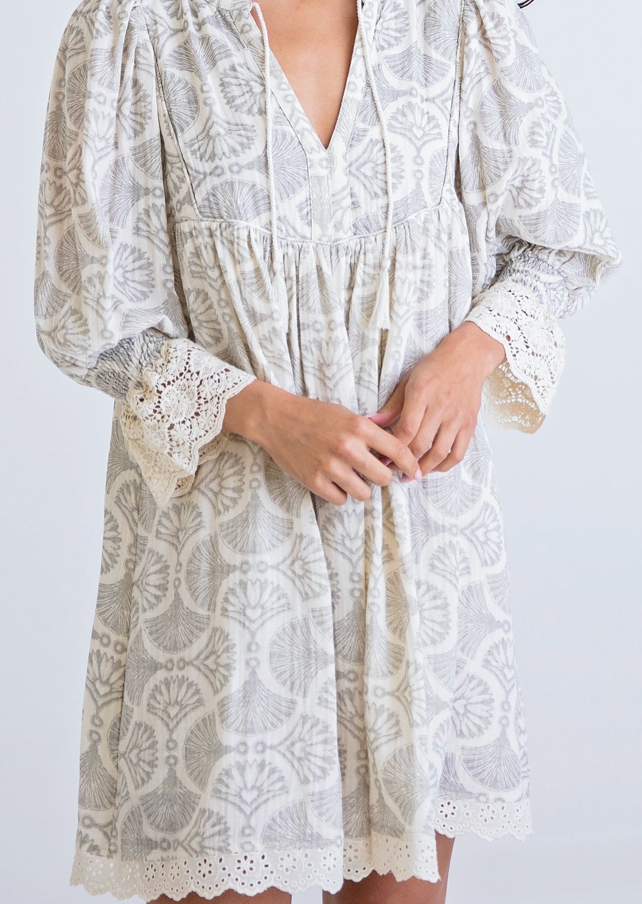 Vintage Fan Boho Crochet Trim Dress - Gray by Karlie