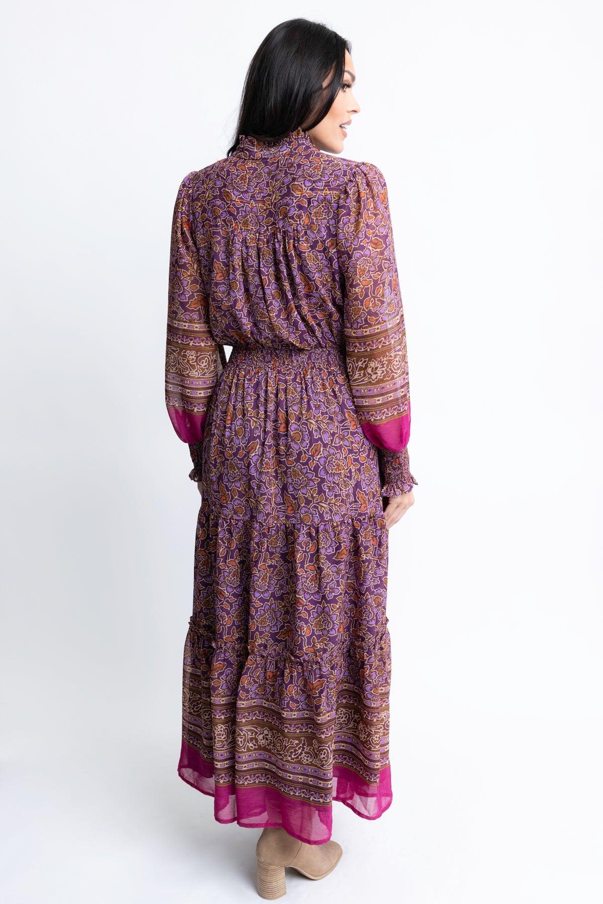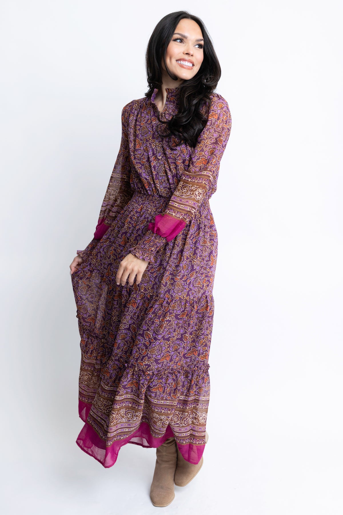 Floral Chiffon Metallic Thread Maxi Dress - Purple by Karlie