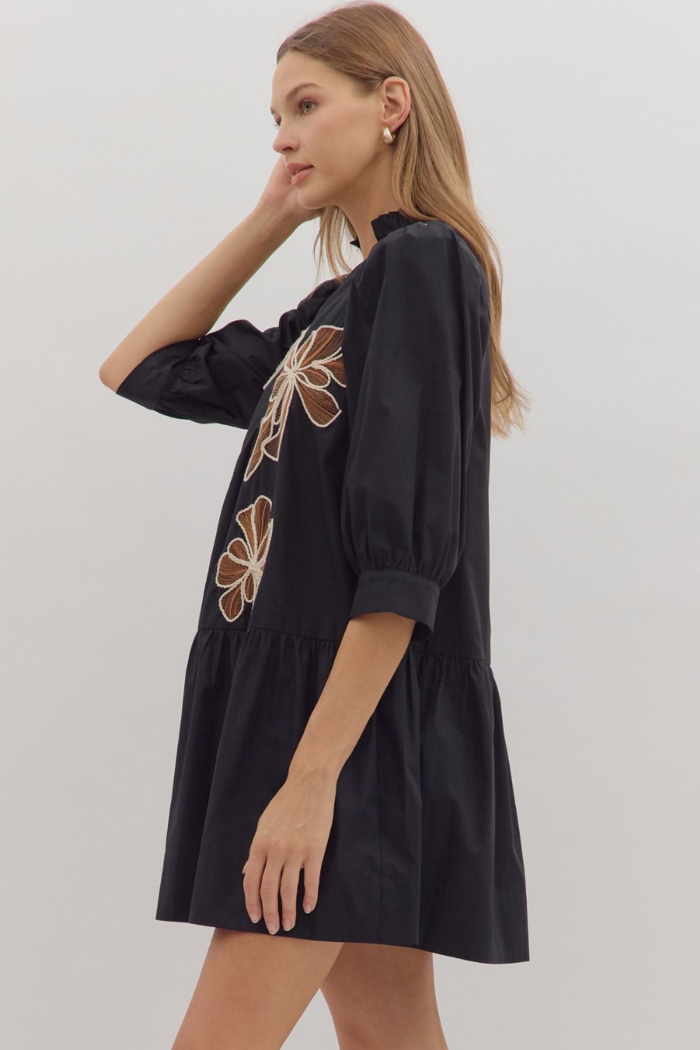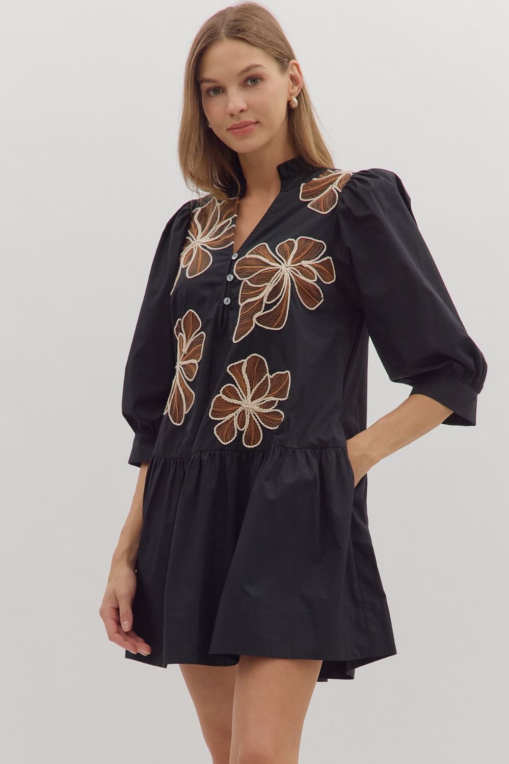 You LOVED the top so we brought it back in a dress! Elevate your wardrobe with the Bloom with Grace Floral Dress in black. Featuring delicately embroidered flowers, this dress adds a touch of elegance and femininity to any wardrobe. Perfect for both casual days and special occasions, this dress brings charm and grace to your everyday style.