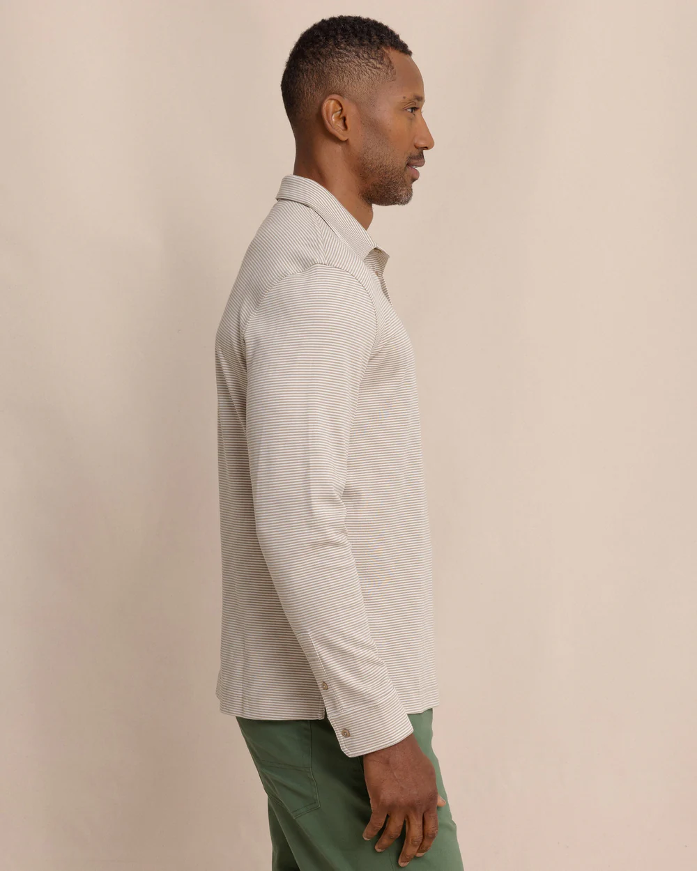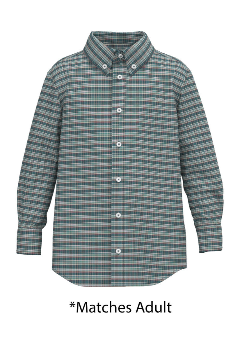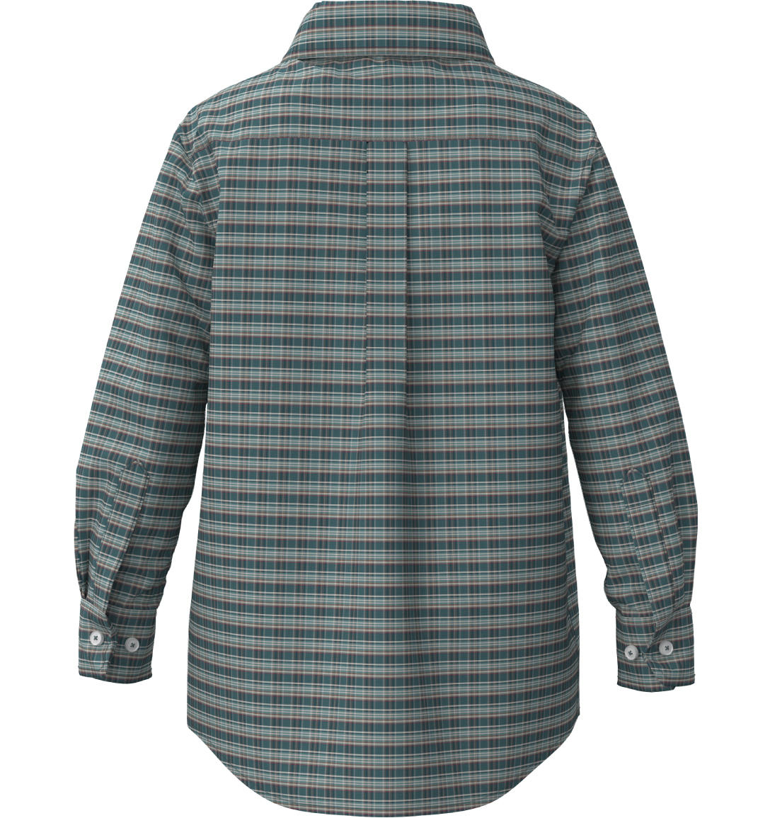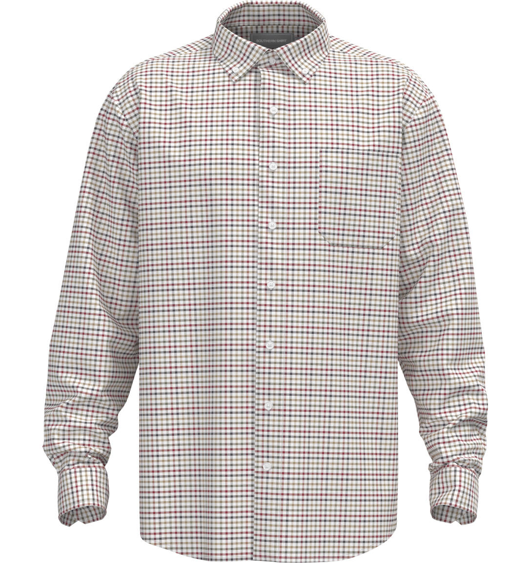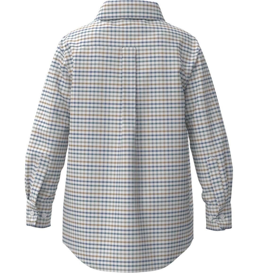 Designed with a non-boxy, modern fit, this shirt features a button-down collar, mitered cuffs, and a front chest pocket with button closure for a clean, functional finish. Back pleats add range of motion, while embroidered side gussets give it a subtle touch of signature detail. Whether you’re pairing it with jeans, shorts, or boots, it’s ready for fireside hangs, tailgates, or weekend getaways.