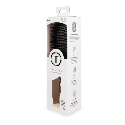 The Boar Bristle Brush brings effortless shine and frizz control to every stroke. The natural boar bristles smooth strands, distributes oils, and boosts shine from root to tip. Made with 60% nylon and 40% boar bristles, our boar hair brush is ideal for sleek styles, short hair, edge control, and men’s grooming.