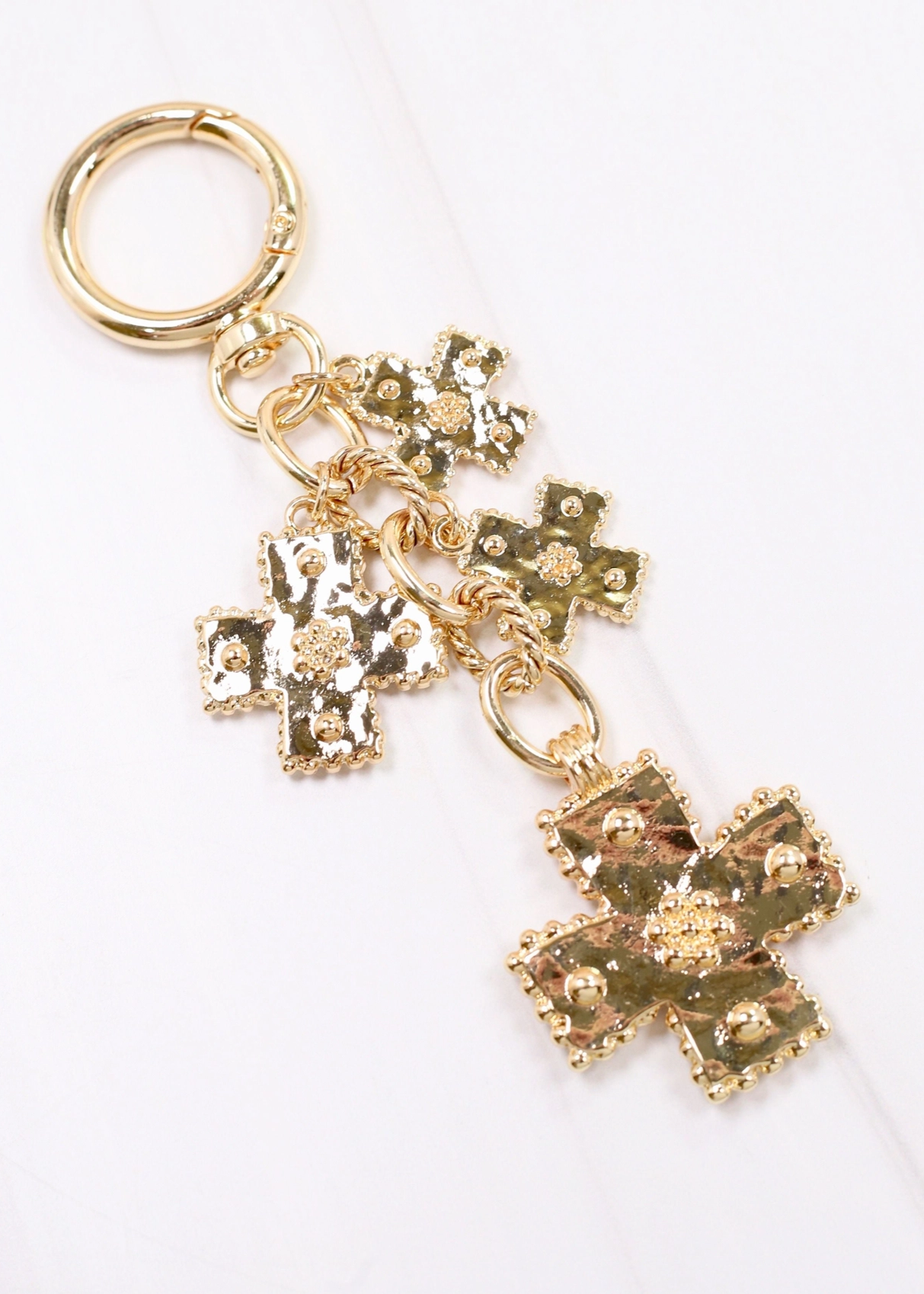 Add a touch of vintage flair with the Charleston Cross Charm in Gold. This coin-style pendant features a hinged clasp, making it a breeze to attach to scarves, necklaces, or handbags. Perfect for mixing and matching, it brings a charming, playful vibe to any outfit.