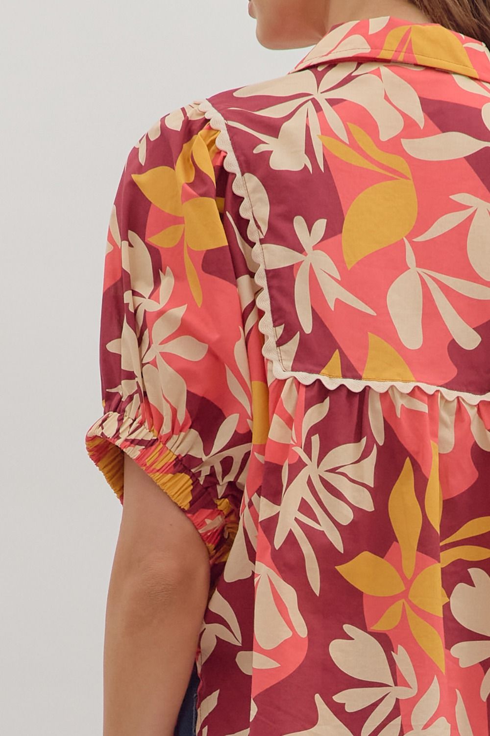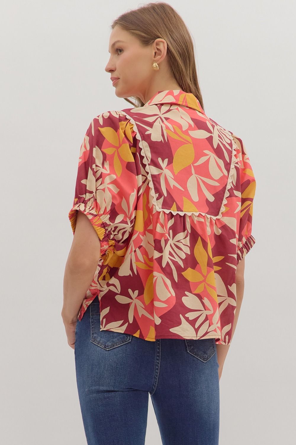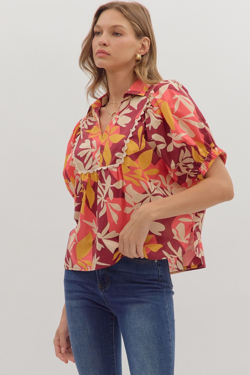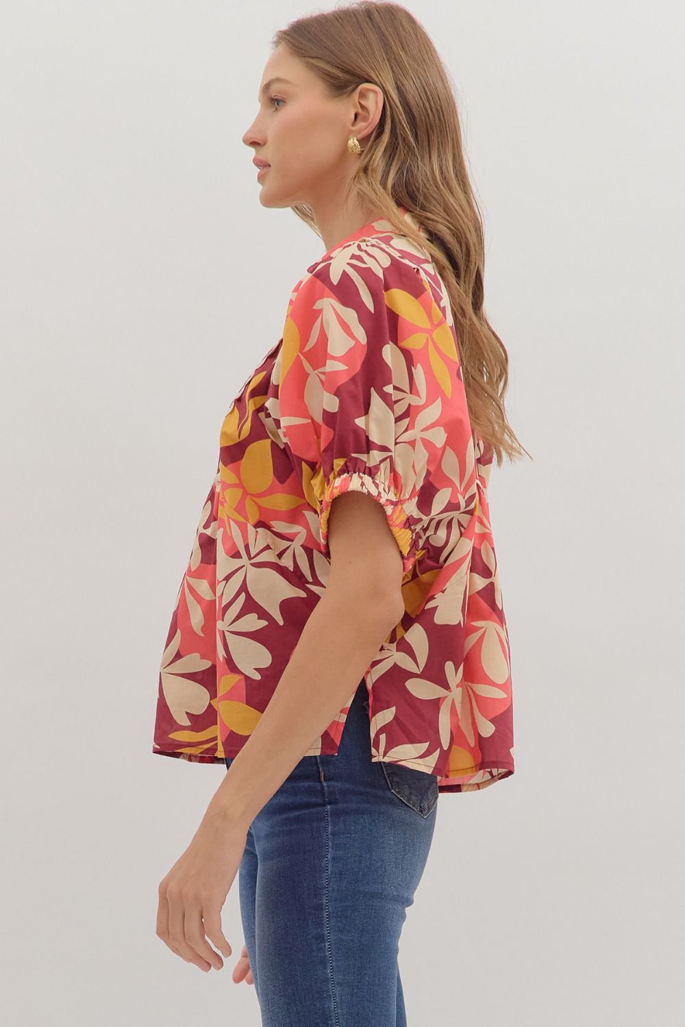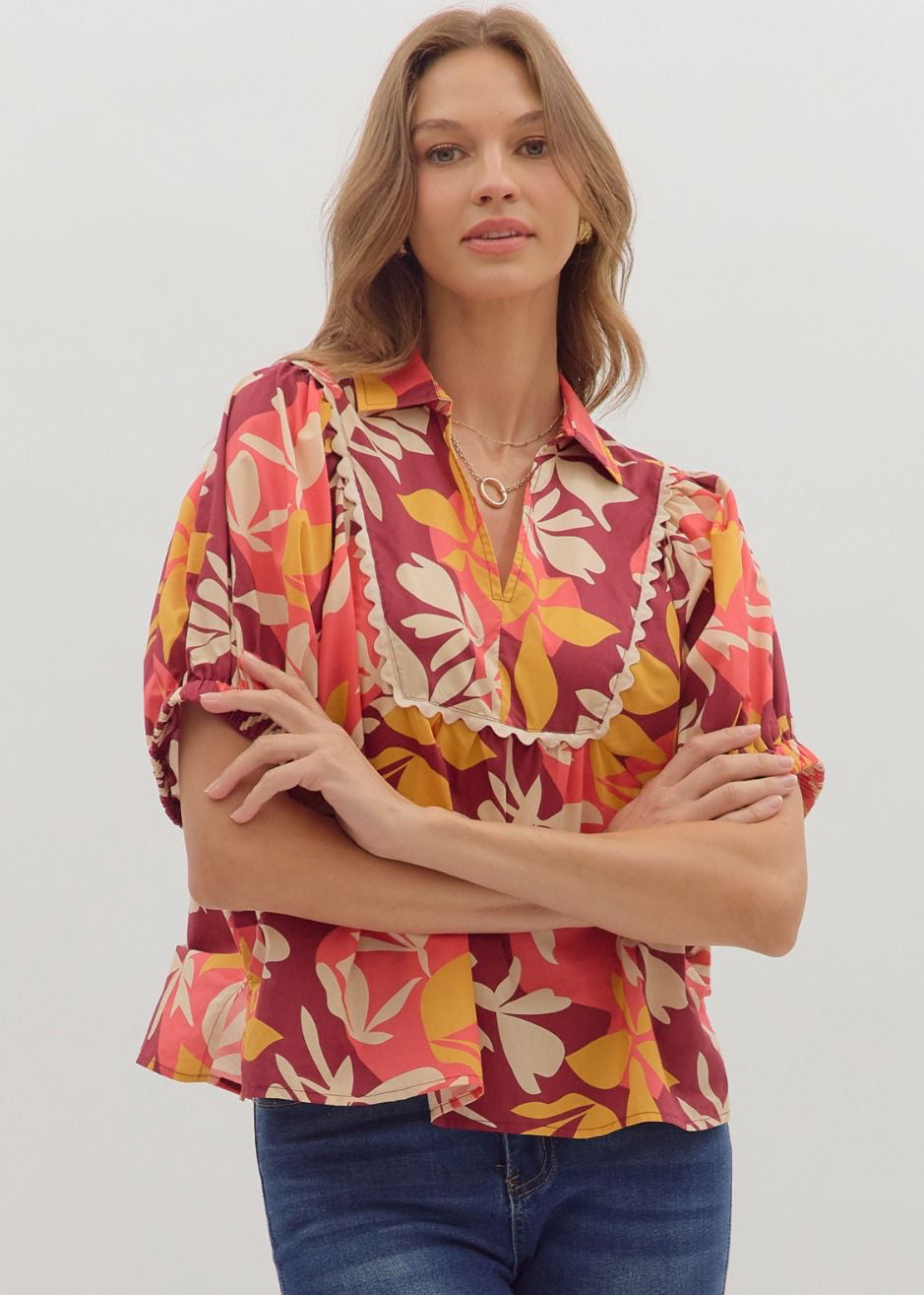 Elevate your everyday style with the Lainey Top. This top features short puff sleeves with elastic for a comfortable yet chic look, while the ruffle split neckline adds a romantic, flowy touch. The stitched placket enhances the top's structured design, giving it a refined and modern feel.