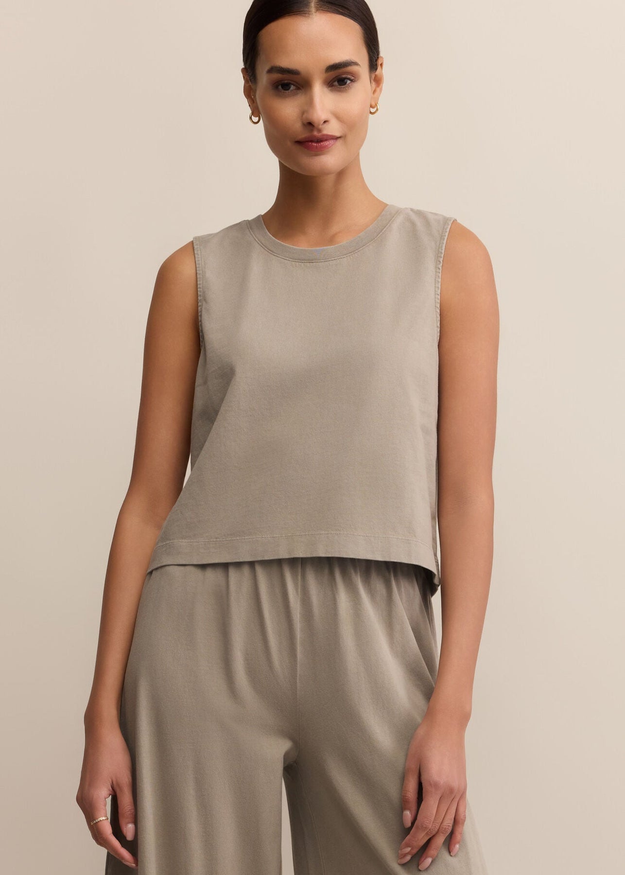 Key Element Sleeveless Ruffle Detail Top - Taupe