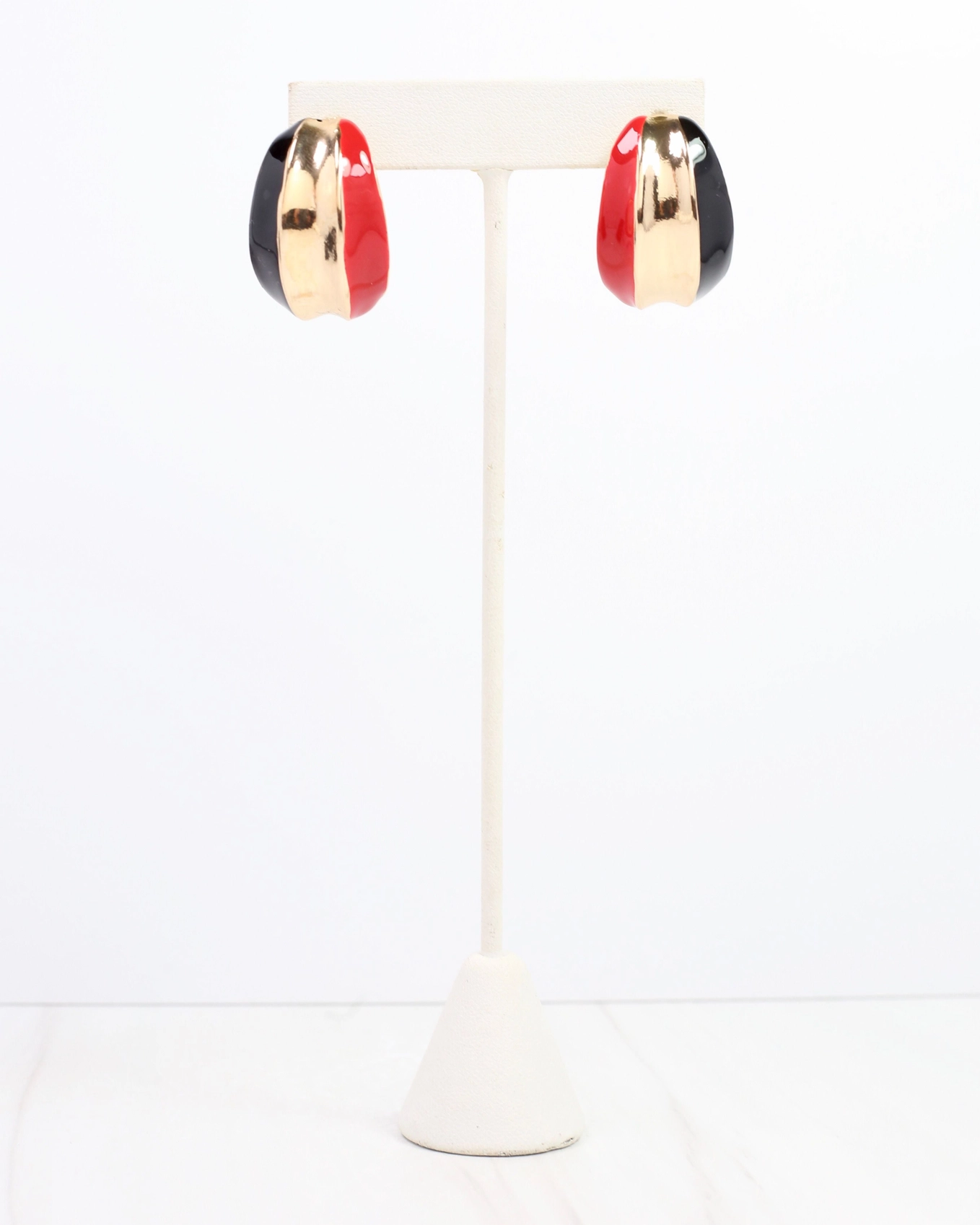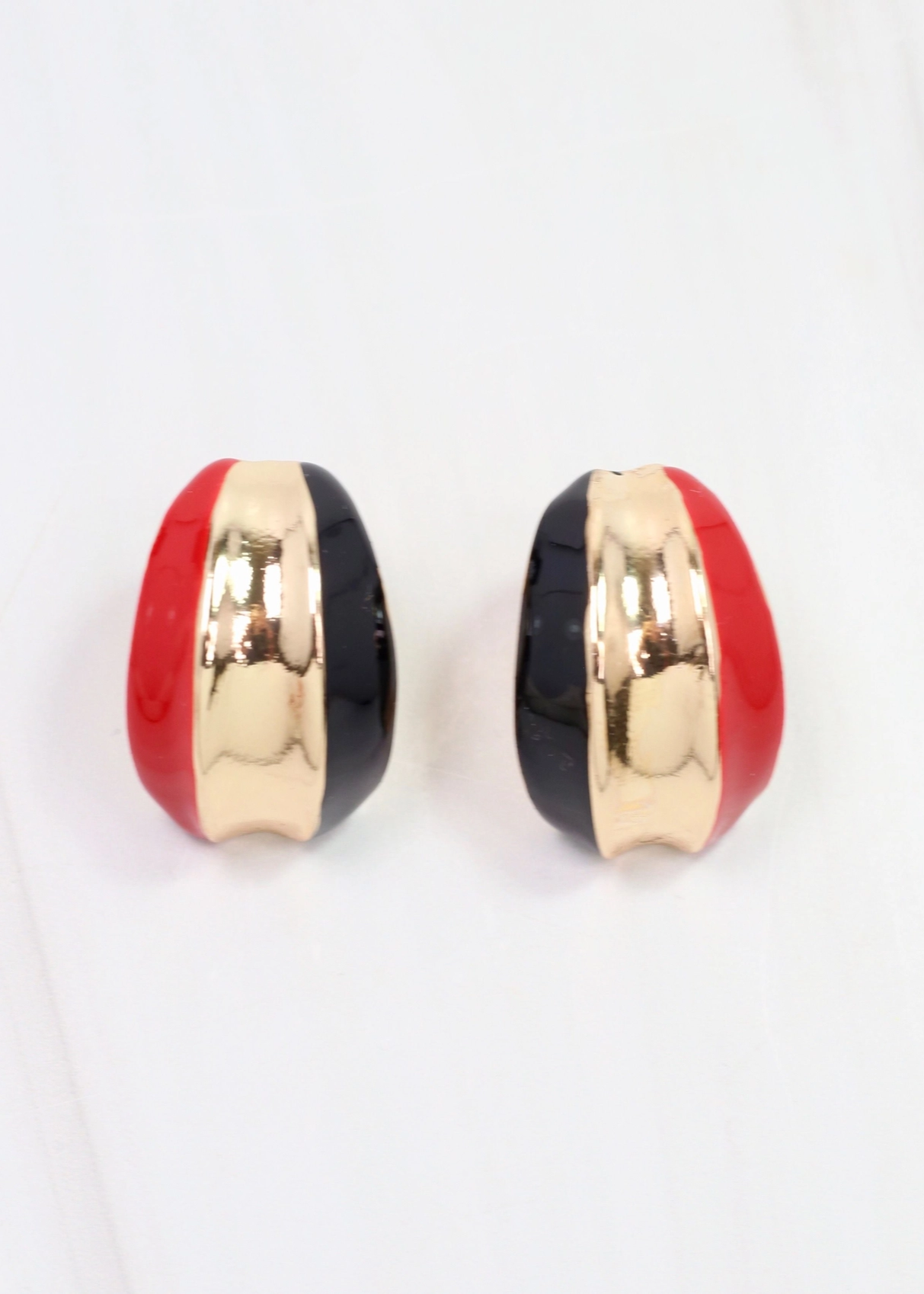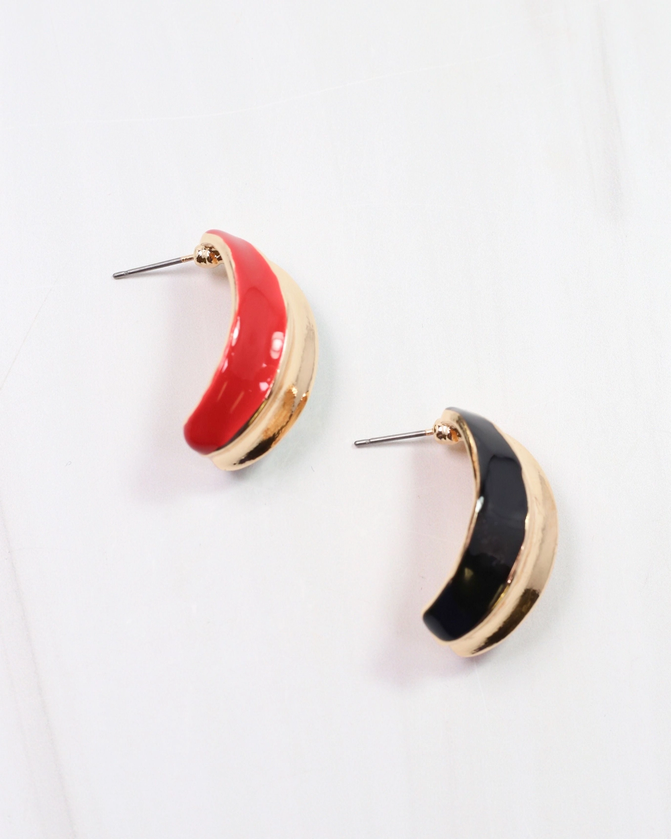 Add a pop of team spirit to your look with the Penney Hoop Earrings. These wide semi-hoops feature vibrant enamel colors on both sides, framed by a shiny gold center for a touch of glam. Perfect for showing off your pride with a playful twist!