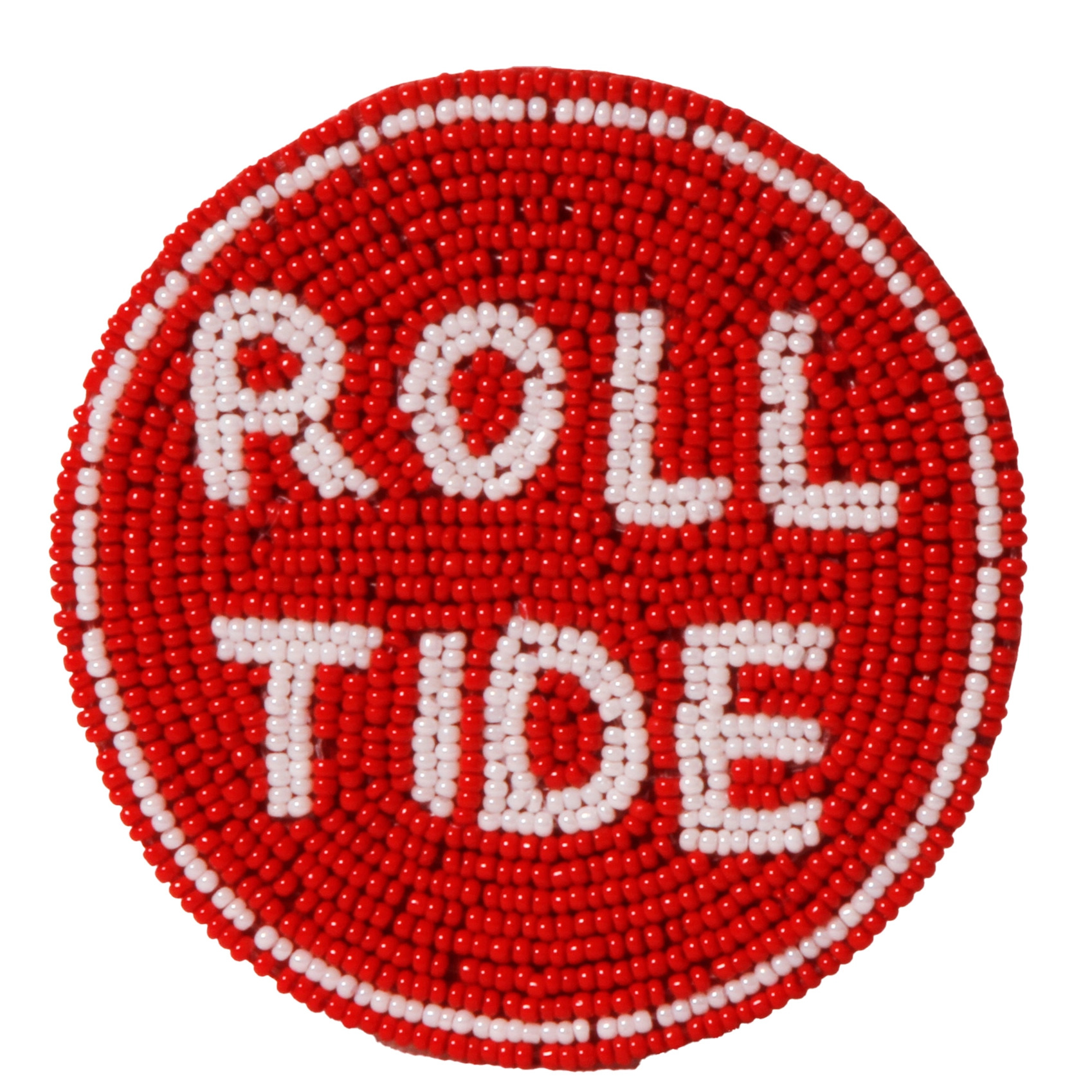 Get ready for game day in style with our Alabama Roll Tide beaded button! Hand beaded in crimson and white, this button is the perfect accessory to show off your team pride. From the tailgate to the stadium, you'll be supporting the Tide in style. Roll Tide!